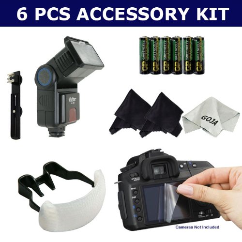 6 Pcs KIT For NIKON D40 D80 D40X CANON 400D + 6 FREE AA Premium Batteries, KIt Includes: Digital Slave Bounce Flash with ZOOM and Bracket + Super Flash Diffuser + 2.5" LCD Soft Cover Screen Protector + 2 Microfiber Cleaning Cloths + 1 Ultra Fine Microfiber Cleaning Cloth GOJA Logo for Sale - Review & Buy at Cheap Price